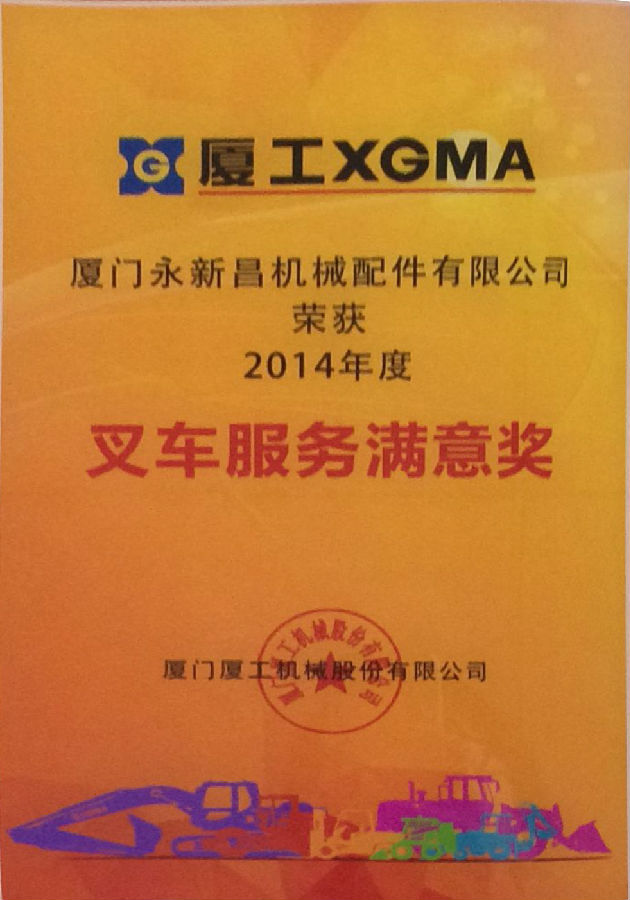 2014年度叉車服務(wù)滿意獎(jiǎng)